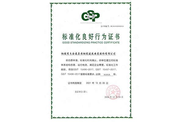 標(biāo)準(zhǔn)化良好行為證書